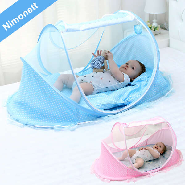 Tato praktická postýlka je navržena pro rychlé a snadné skládání a skládání. Můžete jej dát složený do batohu nebo kočárku a mít ho vždy s sebou.